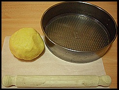 Dividiremos la masa en dos partes,una mayor que será con la que haremos la base de la tarta,y con la menor haremos las tiras que la cubrirán,principal característica de la crostata.